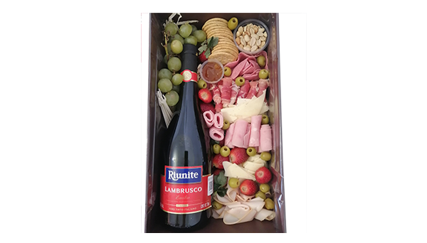 + Jamón de pierna, manchego, galletas integrales, cacahuates salados o japonés, aceitunas, racimo de uvas, fresas, jamón serrano, salami, vasito de mermelada.