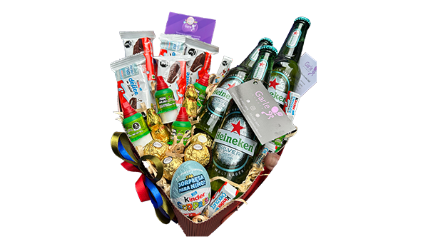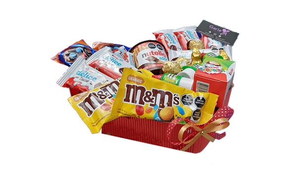 + 4 pzas de chocolates Ferrero Rocher, 4 Kinder Delice, 3 mini Pelones, 1 huevito Kinder, 2 conejitos Turin, 2 paletas Payaso y 4 Kinder chocolate.