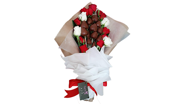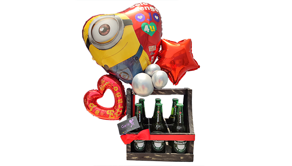 + Café americano, galletas, 2 endulzantes, fresas, 4 globos, tarjeta personalizada.